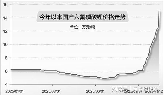 所以,近期六氟磷酸锂是一天一个价,六氟磷酸锂11月12日报15万元/吨,较11月11日的12.85万元/吨,一天就涨了16.73%。和9月底的6.1万元/吨相比,更是涨了145.9%。