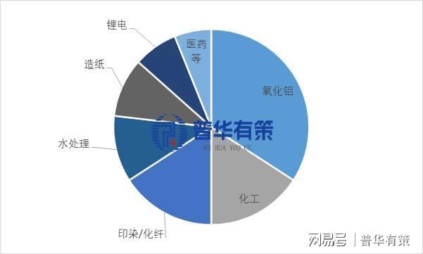 烧碱下游主要用于氧化铝、化工、印染/化纤、水处理、造纸、锂电、医药等领域,需求占比分别为28%、13%、13%、9%、8%、6%、5%。2024年烧碱下游主要应用占比具体情况如下: