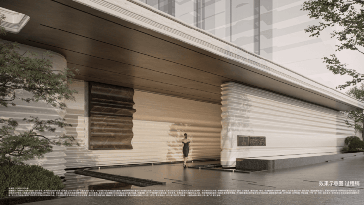 小区采用全人车分流设计,主入口位于西侧佑仁路,通行便捷有序.大门庄重大气,门头通过横向感拉槽与奢石景墙巧妙结合,搭配序列感植物,营造秩序感与昭示性.主入口三进式礼序,仪式感与功能性兼备.一进为酒店式落客和车马厅,以礼遇之姿迎接业主归家,大堂尽显尊崇;二进静谧水院、会客廊架、下沉庭院相互呼应,形成意境洄游空间;三进风雨连廊相伴,带来伴水归家惬意体验.次入口在东侧,方便出行.