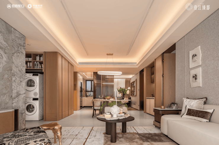 出于同源康定壹拾玖的审美,壹江臻邸延续了“揉石成缎”的核心匠艺,月光米黄石材门头历经十余道工序精磨,将织物般的温润肌理化作归家第一重礼遇;更以瑰丽酒店同源的严苛标准,打造家族专属门牌徽章,静默宣告其恢弘身份.