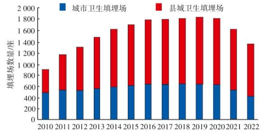 根据2023年住建部城乡建设统计年鉴公布的统计结果,截至2022年底,我国内地运行的生活垃圾填埋场有1401座,其中695个设市城市运行的生活垃圾卫生填理场444座,1481个县城运行的生活垃圾卫生填埋场957座。