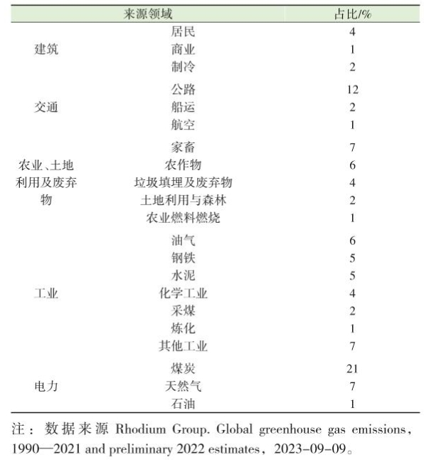 生活垃圾填埋场排放的甲烷是全球重要的温室气体排放源。根据美国荣鼎咨询公司发布的研究报告,2022年全球温室气体排放量为5.06x1010t,比2021年增加1.1%。从2021年全球温室气体分行业数据看,垃圾填埋及废弃物领域温室气体排放占比为4%(表3),由此可见,垃圾填埋及废弃物领域在温室气体排放方面占据“重要地位”。是一个大行业。比较来看,全球船运温室气体排放占比2%,航空温室气体排放占比1%;全球钢铁生产温室气体排放占比5%,水泥生产温室气体排放占比 5%。