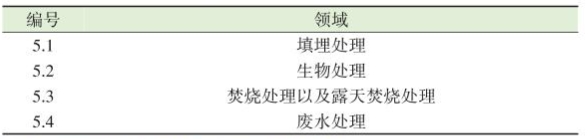 根据JPCC国家温室气体清单指南编制要求,废弃物处理作为重要温室气体排放源排在第5项(表1),废弃物处理产生的温室气体统计估算主要包括4项(表2),即填埋处理、生物处理(包括堆肥处理和厌氧消化处理)、焚烧处理以及露天焚烧处理、废水处理。需要特别说明的是,含有余热利用的垃圾焚烧发电温室气体排放统计在能源领域,对于没有余热利用的小型焚烧以及露天焚烧排放的二氧化碳统计在废弃物领域。