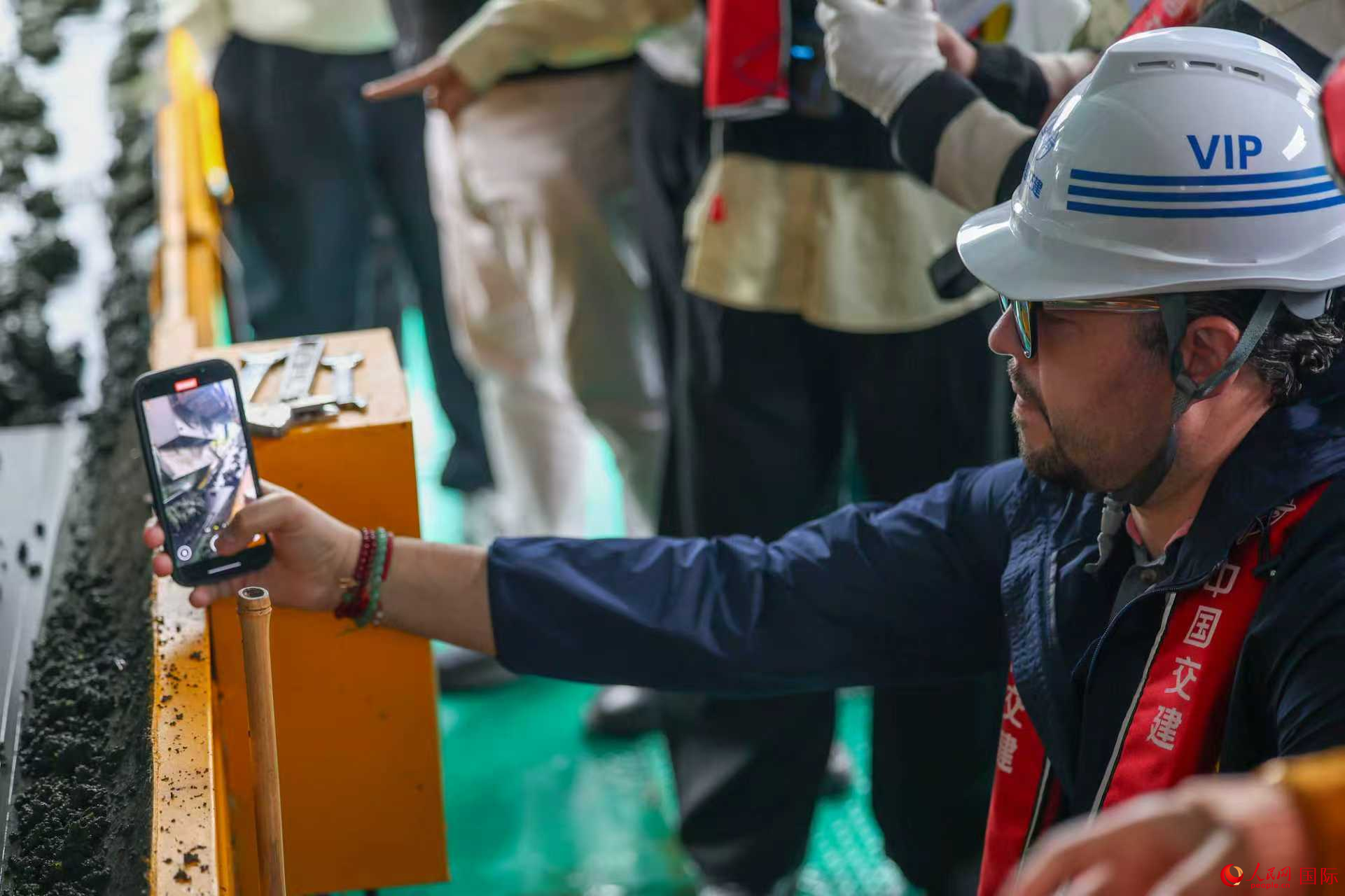 2025“一带一路”媒体合作论坛中外媒体联合采访团在中交集团为滇池量身定制的“藻水共治”一体化平台采访调研。人民网记者 张武军摄