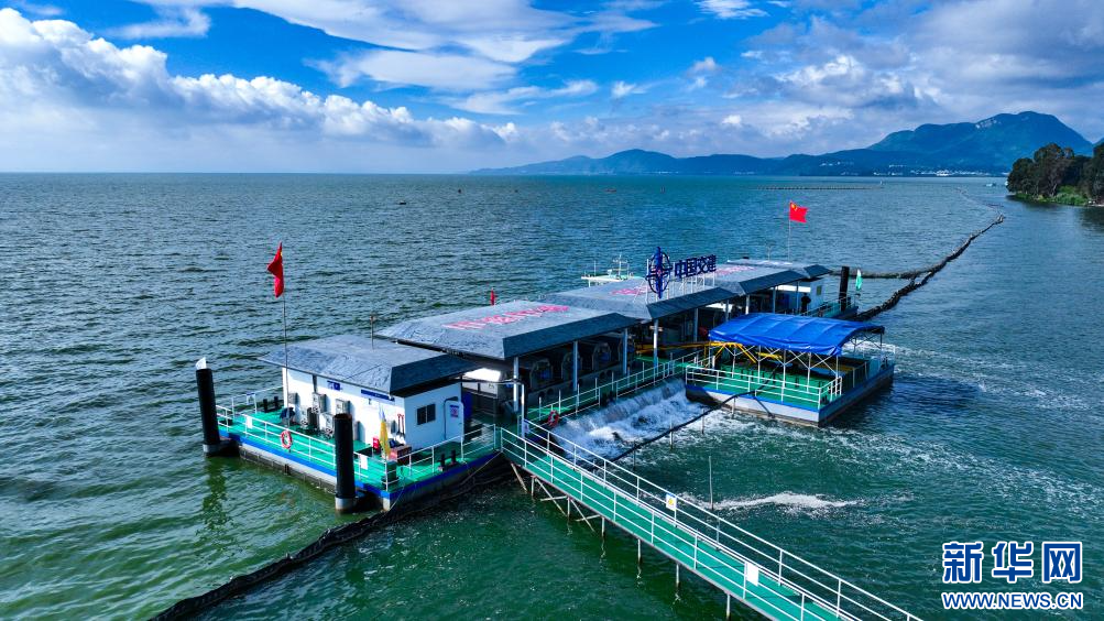 新华网昆明9月21日电(记者 胡了然)初秋的滇池湖面微风轻拂,波光粼粼,一座巨型蓝色平台屹立湖面,这是由中国交通建设集团为滇池量身定制的“藻水共治”水上一体化平台。登上防滑甲板,核心处理设备的运转场景便映入眼帘——机械运转轰鸣声中,泛着淡绿色的富藻水通过专用管路被源源不断吸入平台舱体,对蓝藻进行技术分离后,短短数分钟,清澈透亮的尾水便从另一侧出水口涌出,稳稳汇入滇池。