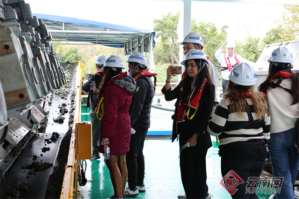 9月19日,2025一带一路媒体合作论坛中外记者采访行活动在昆明举行。来自乌拉圭、阿根廷、古巴、墨西哥、巴西、萨尔瓦多、秘鲁、智利、哥伦比亚等9个拉美地区国家的18名媒体记者走近中国交通建设集团有限公司(简称“中交集团”)承建的滇池蓝藻打捞处置服务项目,探访国内规模最大的“藻水共治”一体化平台,深入了解滇池蓝藻治理情况,解锁高原湖泊治理的中国智慧和中国方案。